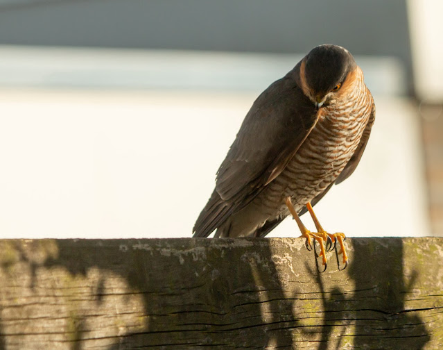Wat geweldig dat de sperwer bij je in de tuin kwam.